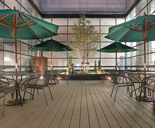デッキ材に補強材を入れ、デッキ面の強度をアップ。多くの人が集まる店舗や公共施設におすすめです。