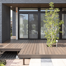 リビングを延長したような軒下空間の活用提案ができ、住まいと調和するデザインテラスです。