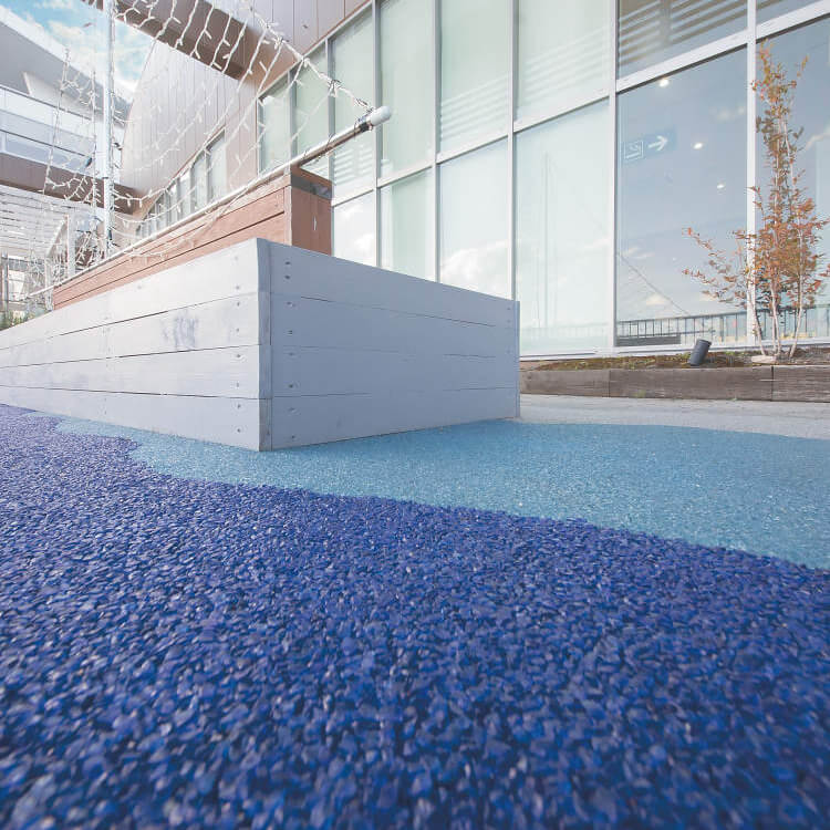 無黄変ウレタン樹脂の採用で、従来のエポキシ樹脂に比べ、耐久性・耐候性に優れています。黄変しにくく美しい舗装面を保ちます。