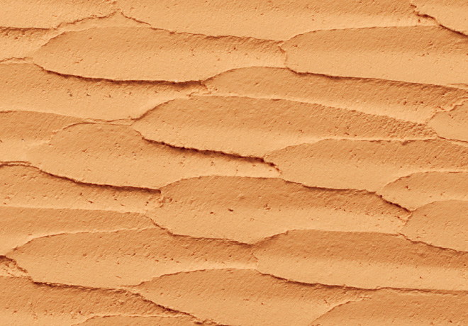 模様付けの凸部のい研磨することで、石膏系塗材(A)が部分的に露出し、味わいのある複色仕上げになります。