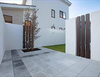 玄関から駐車スペースや門へと続くアプローチ、傷んでしまった外壁・外構などに変化を加えると、住まいの表情を一変させることができます。とくに、土間コンクリート部分に色や模様を加えると、全体の雰囲気が大きく変わります。