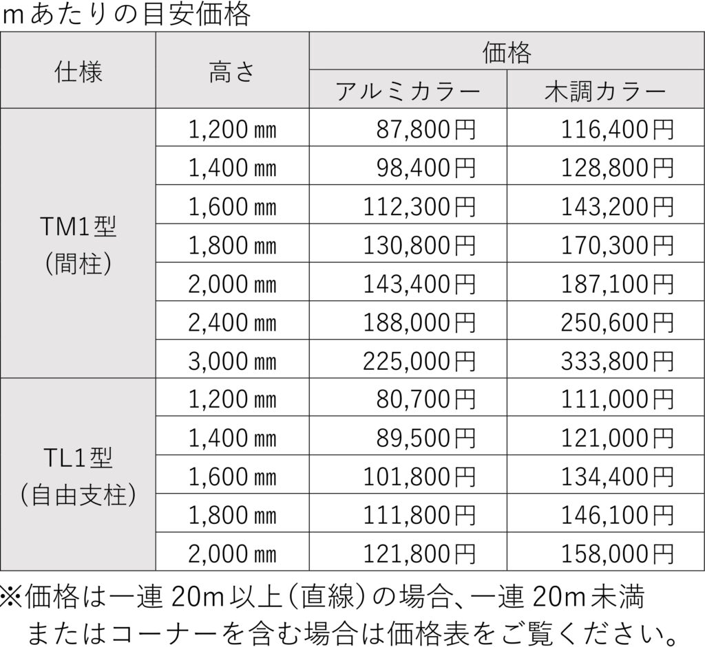 ※アレグリアフェンスTM1型/TL1型について詳しくは デジタルカタログ をご覧ください。