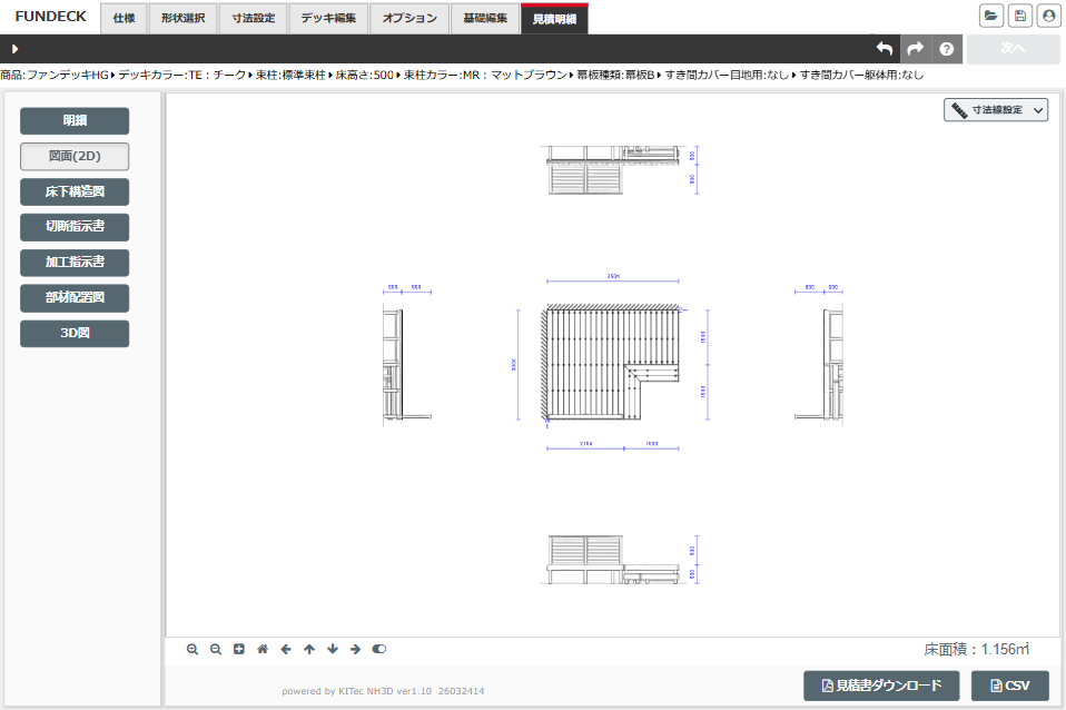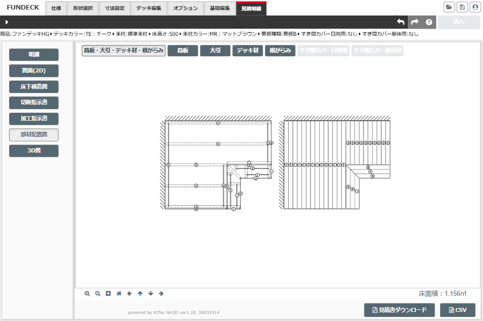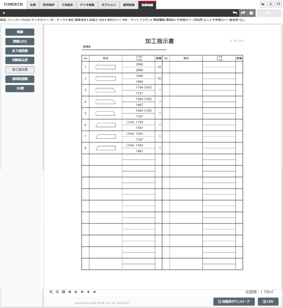 また、見積書や図面に加え、現場で必要なデッキ材の切断加工図や